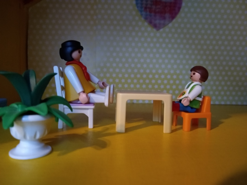 Ik werk steeds op een visuele manier en gebruik allerlei materialen (bv papier en potloden, legosteentjes, playmobil, spelletjes, kaartjes, opdrachten op werkblaadjes enz.).